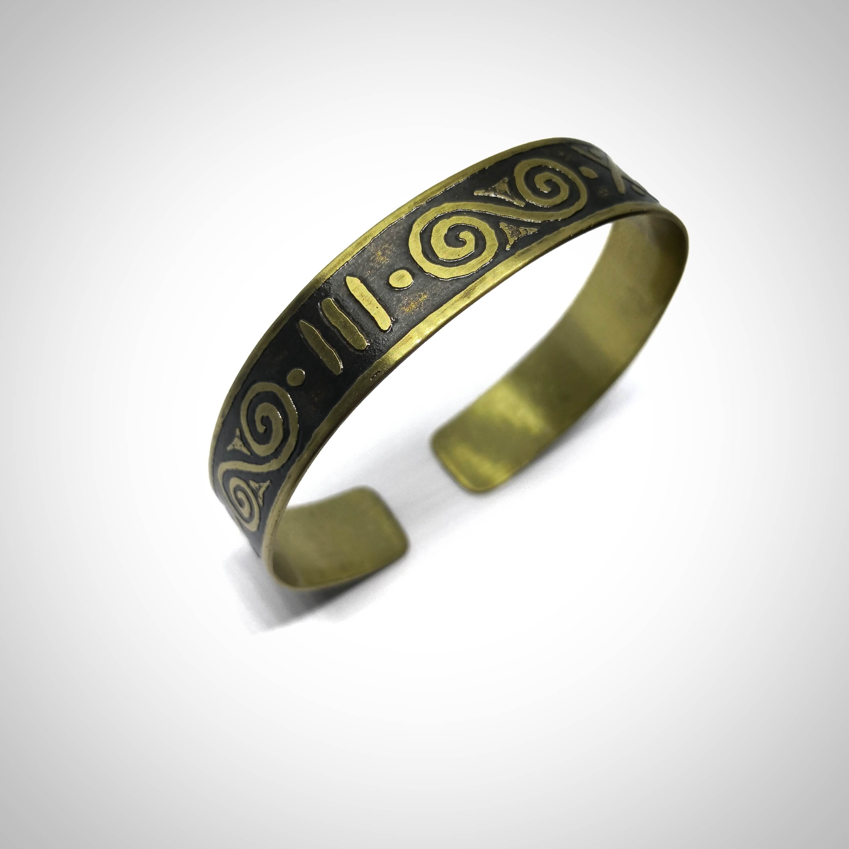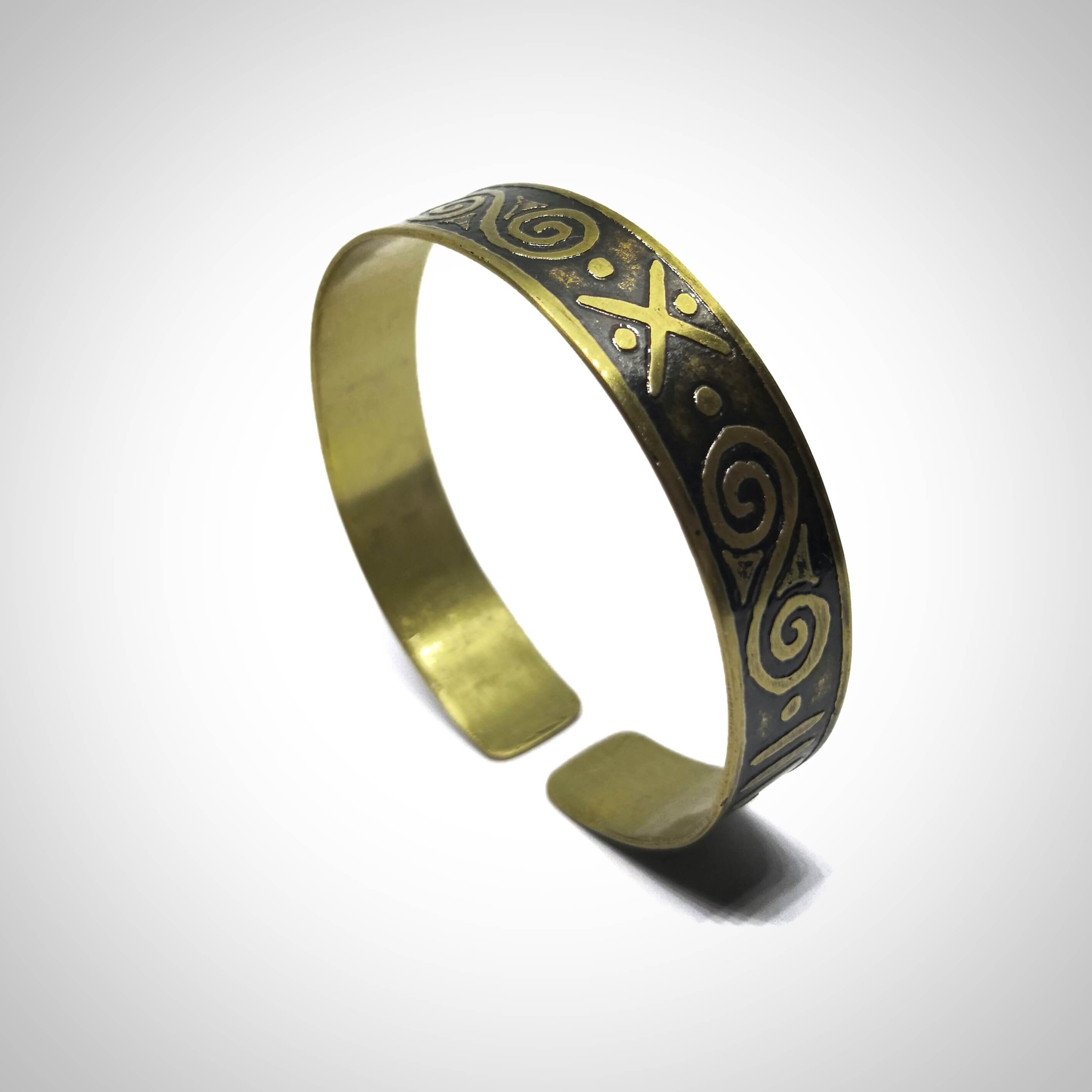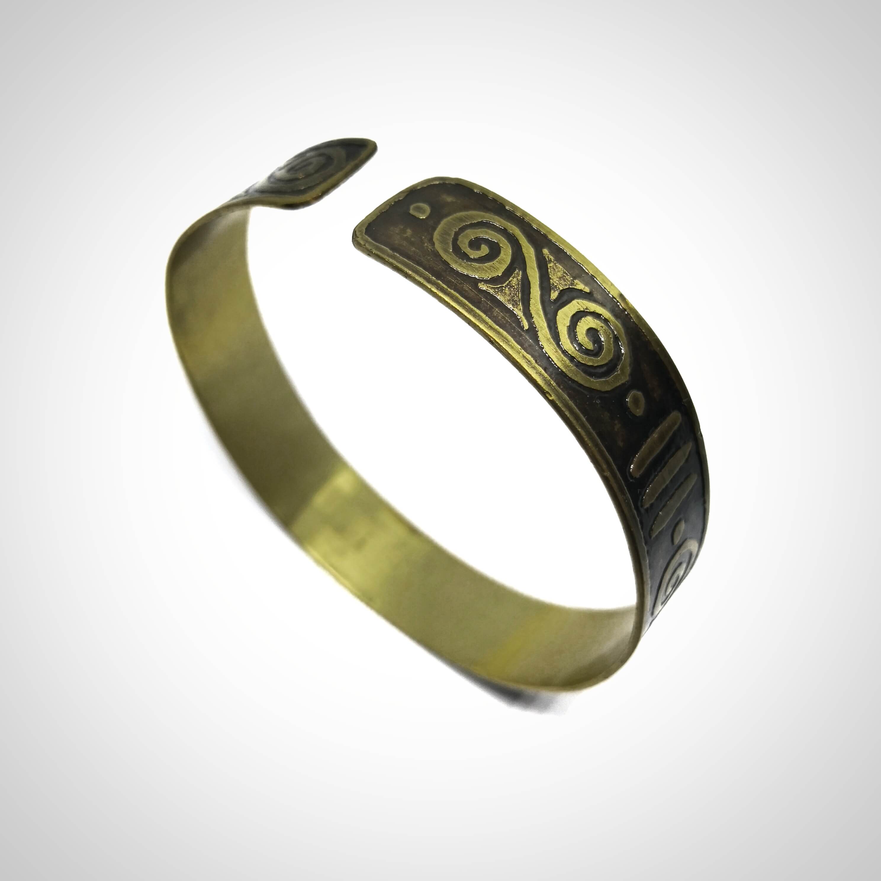 Žalvarinė apyrankė, 1,3 cm. pločio, 6 cm. skersmens.