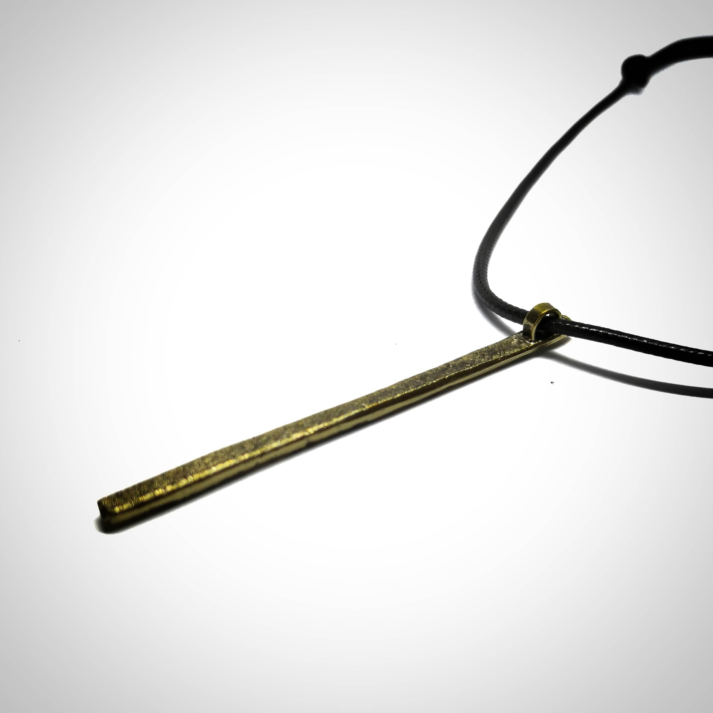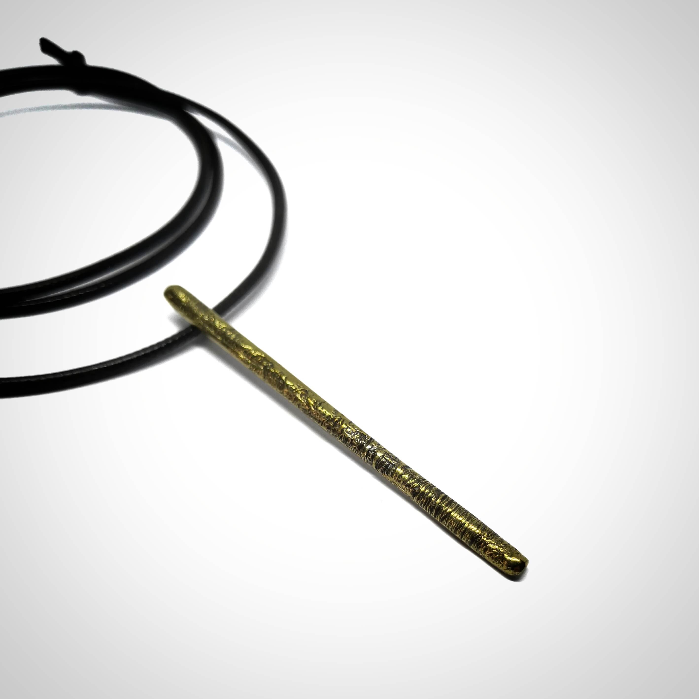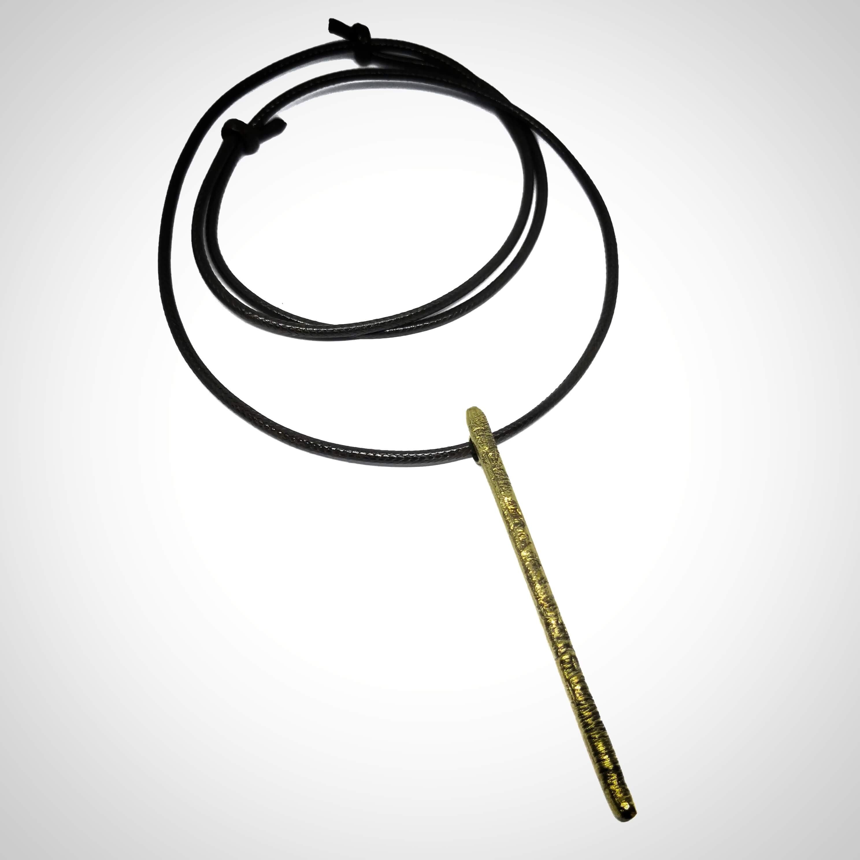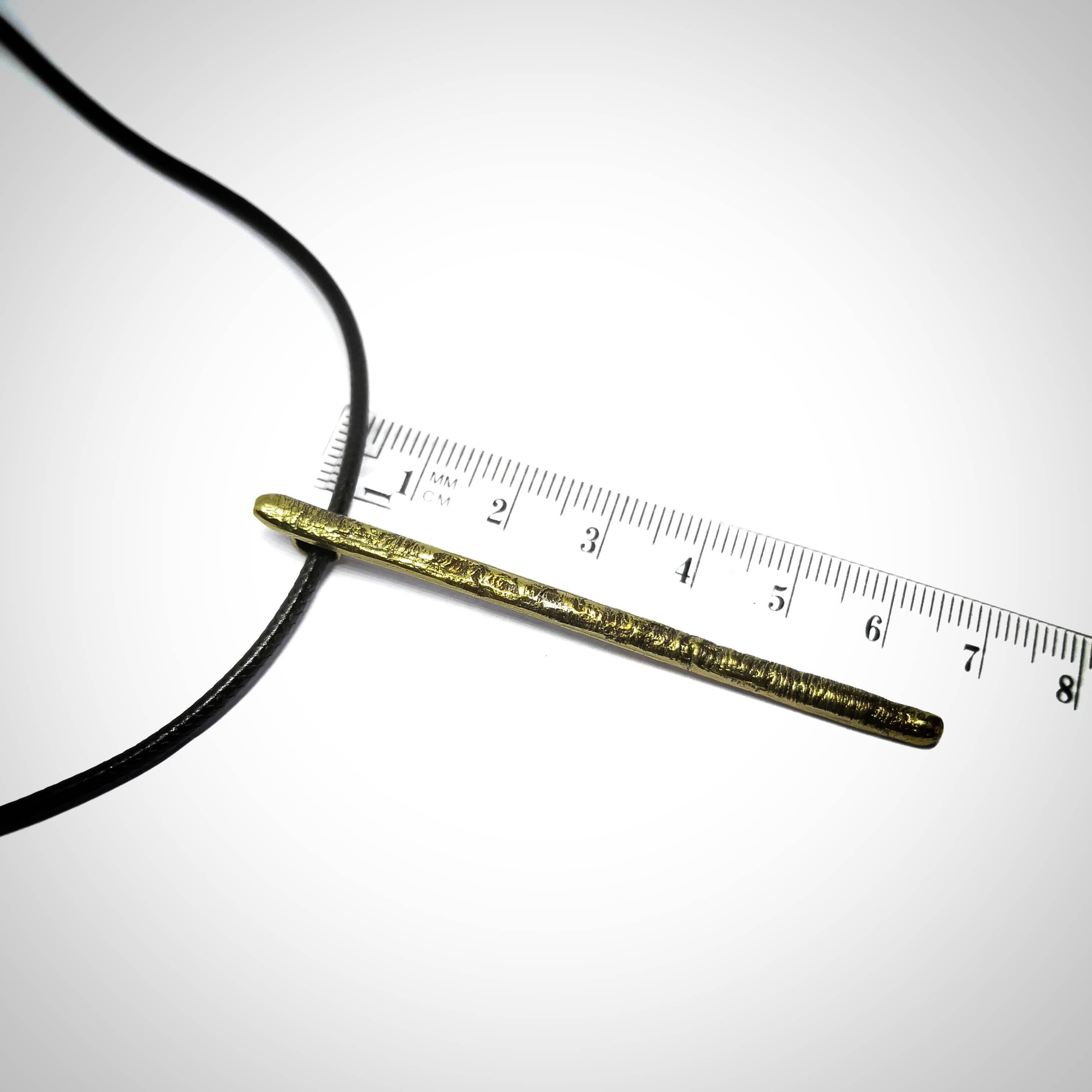 Žalvarinis kaklo papuošalas 6,7 cm. ilgio, reguliuojamo dirželio ilgis - 61 cm.