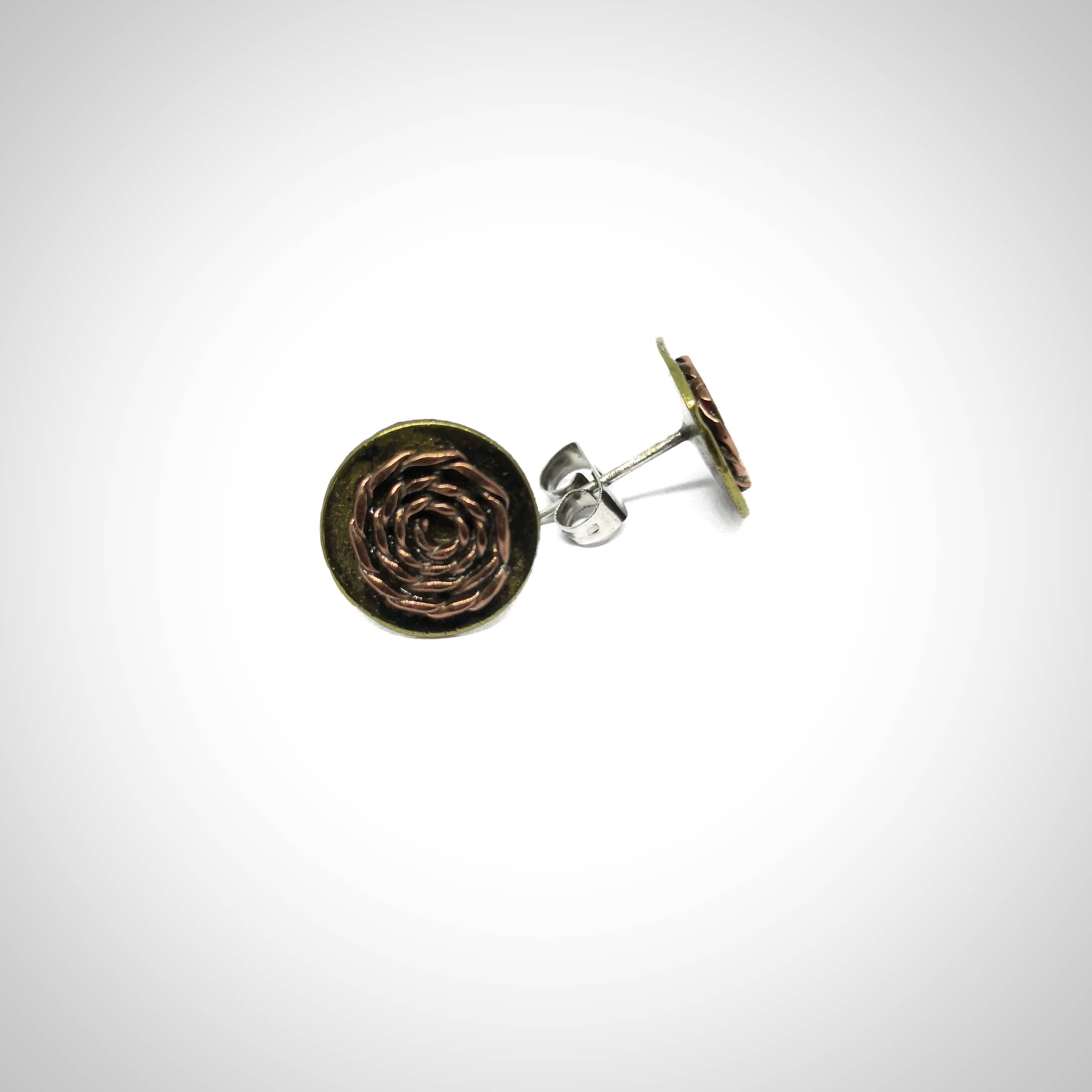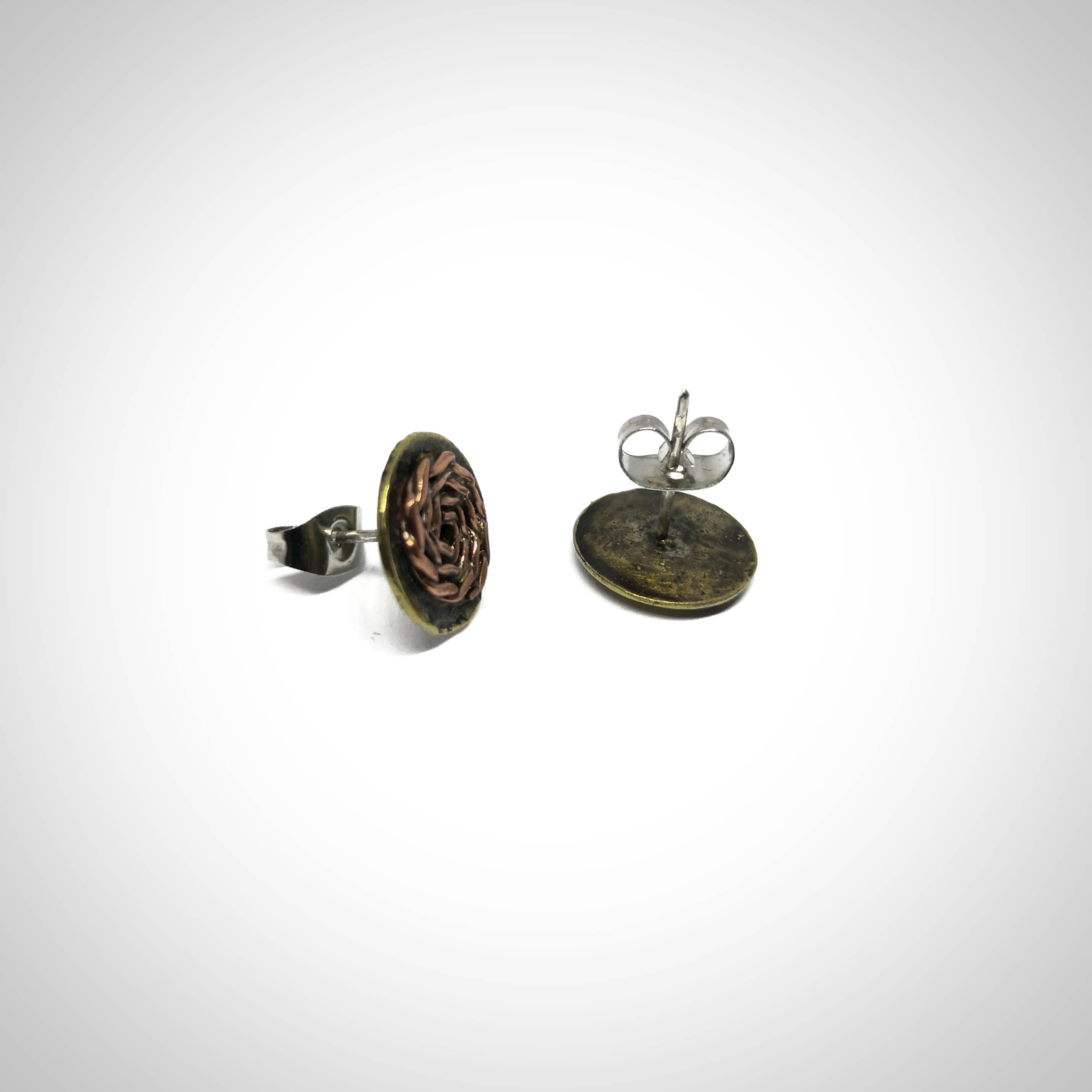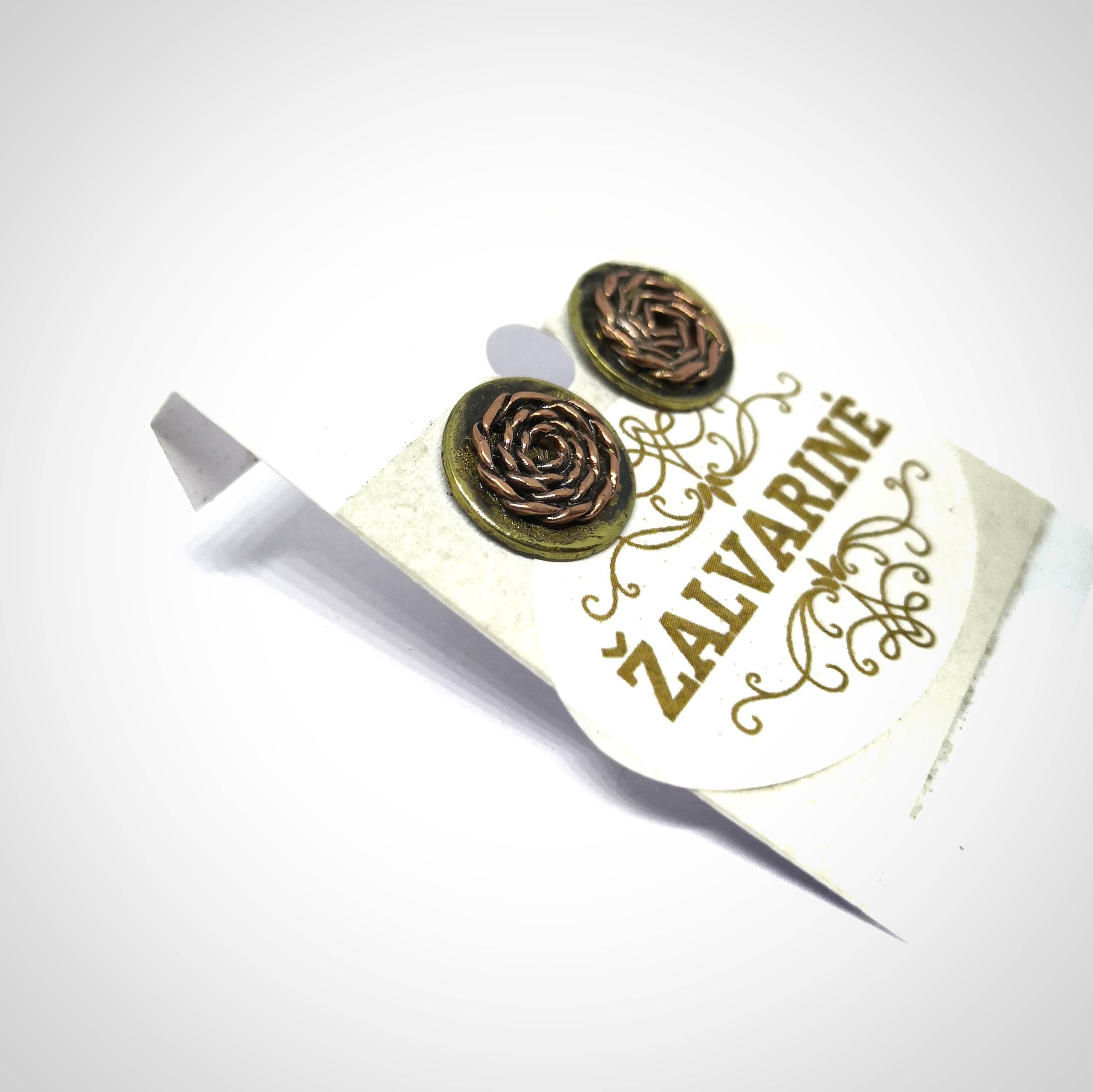Žalvariniai auskarai su variu, apie 1,2 cm. skersmens.