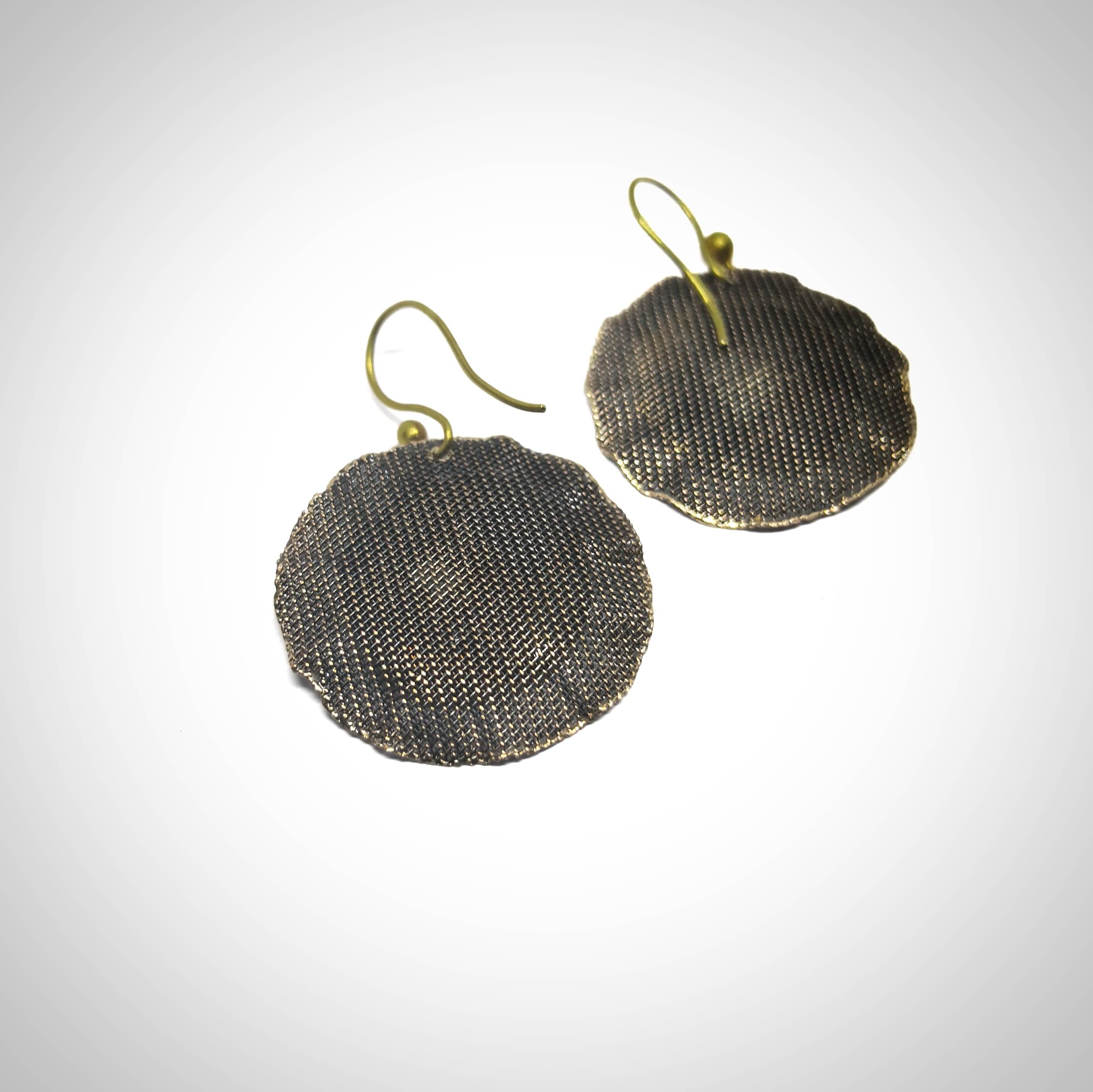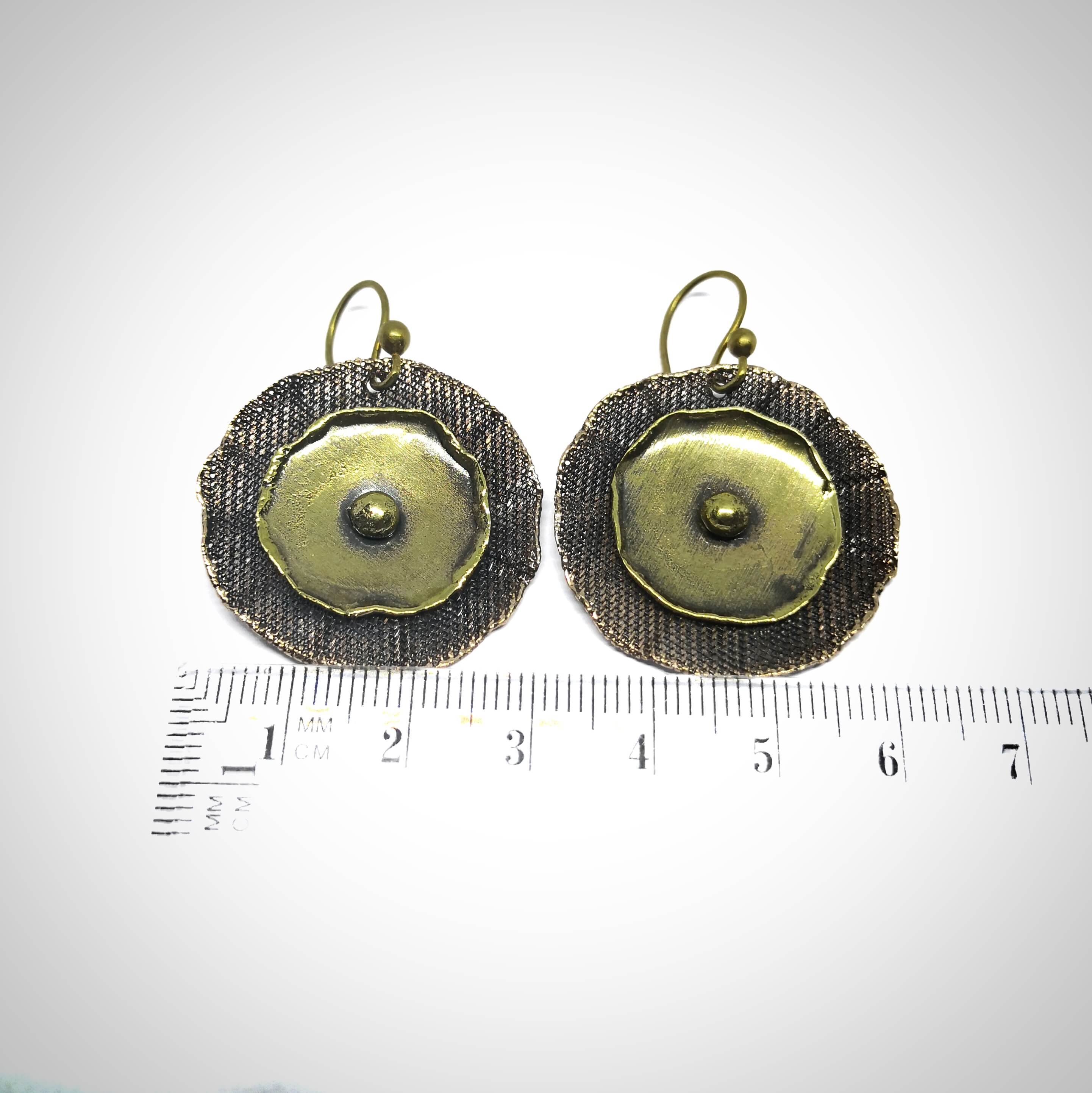 Žalvariniai auskarai, apie 3 cm. skersmens.